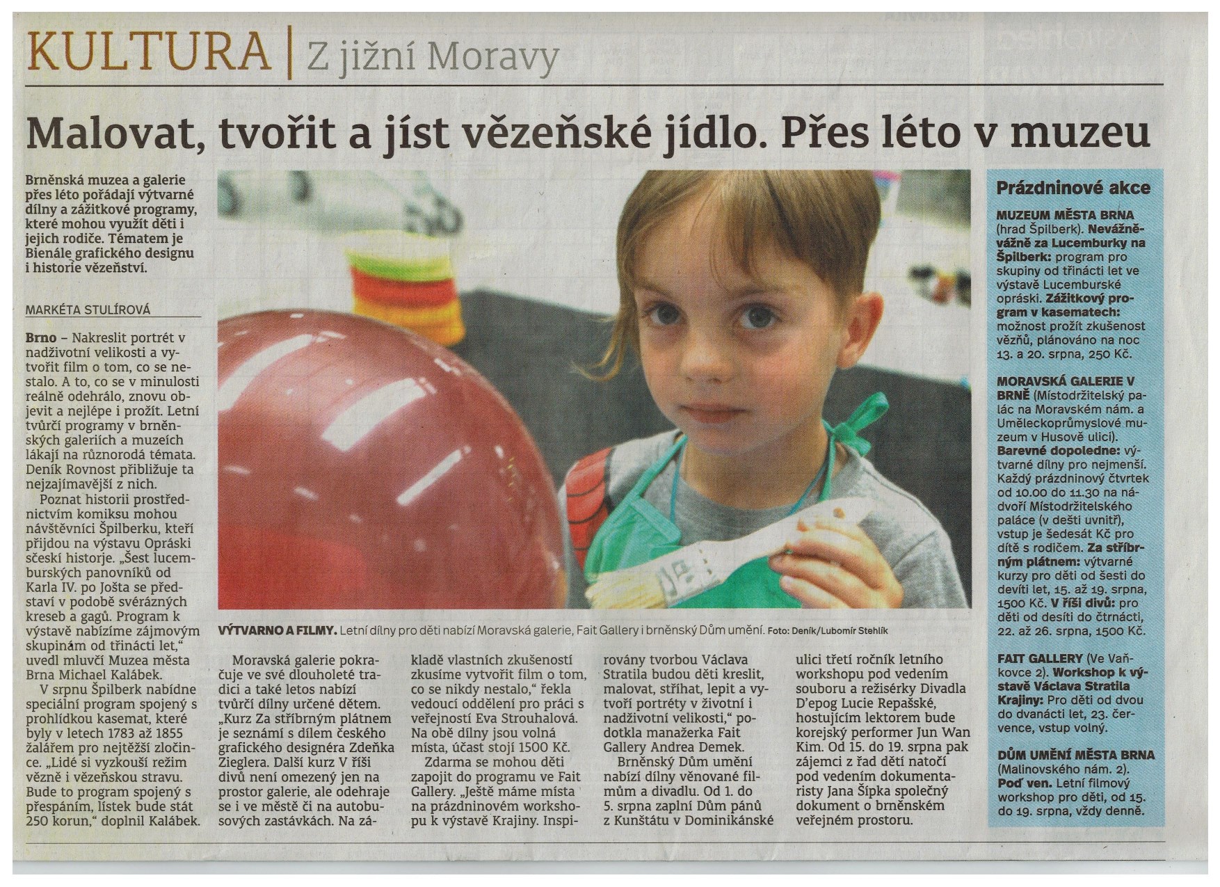 There are still few spots left at the LANDSCAPES workshop for children from 2 to 12 years on Saturday July 23rd at 10 am. Inspired by Václav Stratil the kids will draw, paint, cut and paste to create their own human scale portraits. Please confirm your attendace on les@faitgallery.com.