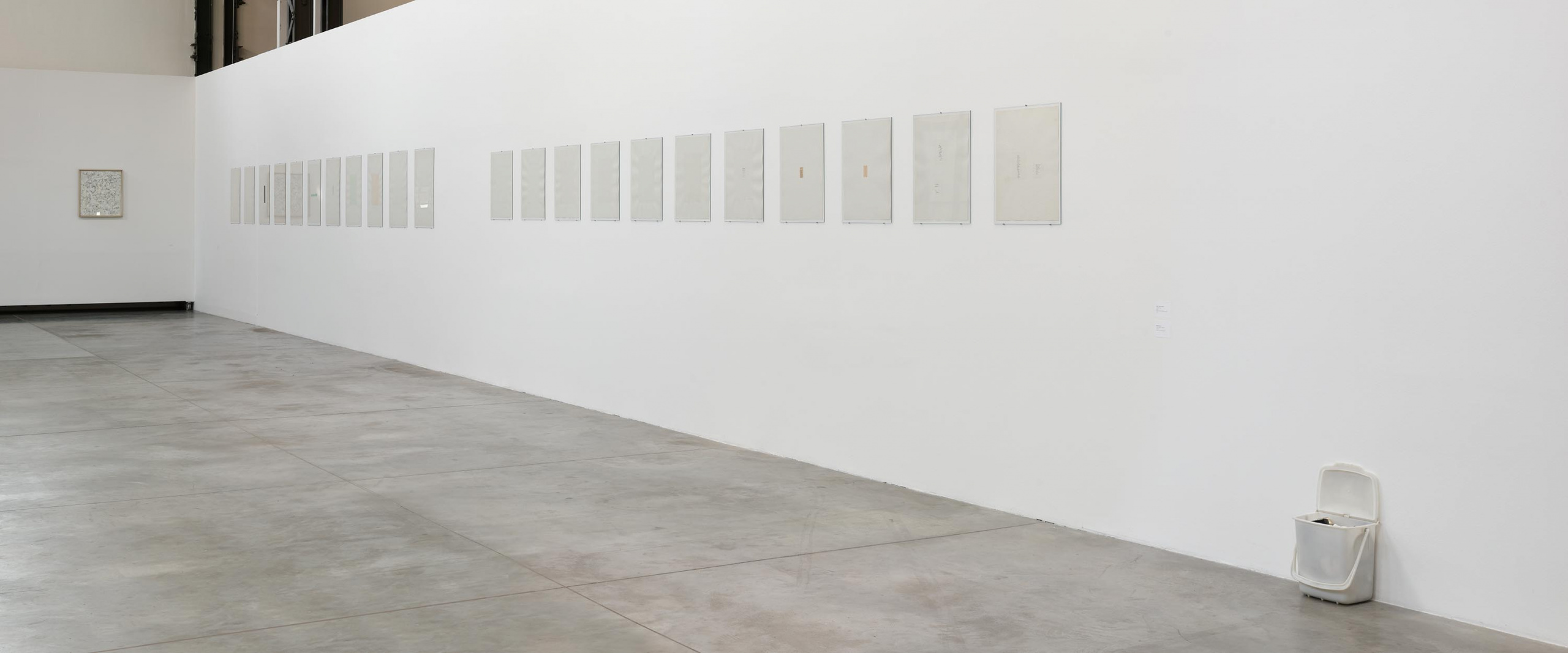 The process character of drawing started to manifest itself in Adamus’s art in 1980 in the Flosages cycle. Although chronologically they rank with Minimal Metaphors and to a large extent are also metaphorical, these works can’t be classified with Minimal Metaphors due to their completely different structure and point of departure. The Flosages series consists of sequences of mostly connected lines which are of different thickness but are always in monochrome black pencil of different hardness, or an ink felt-tip pen. They always culminate in one line in colour, and there exist different time intervals between the drawings of the individual black lines (weeks, months but also years). The closing of the growth process with a colour line which gave the cycle its name symbolizes flower (flos in Latin). Despite the fact that Flosages have different shapes, they typically show a repeatedly connected line the phases of which take place in different time periods, and many of them are frozen in the process of growth, awaiting the next phase or the final stage - flower.