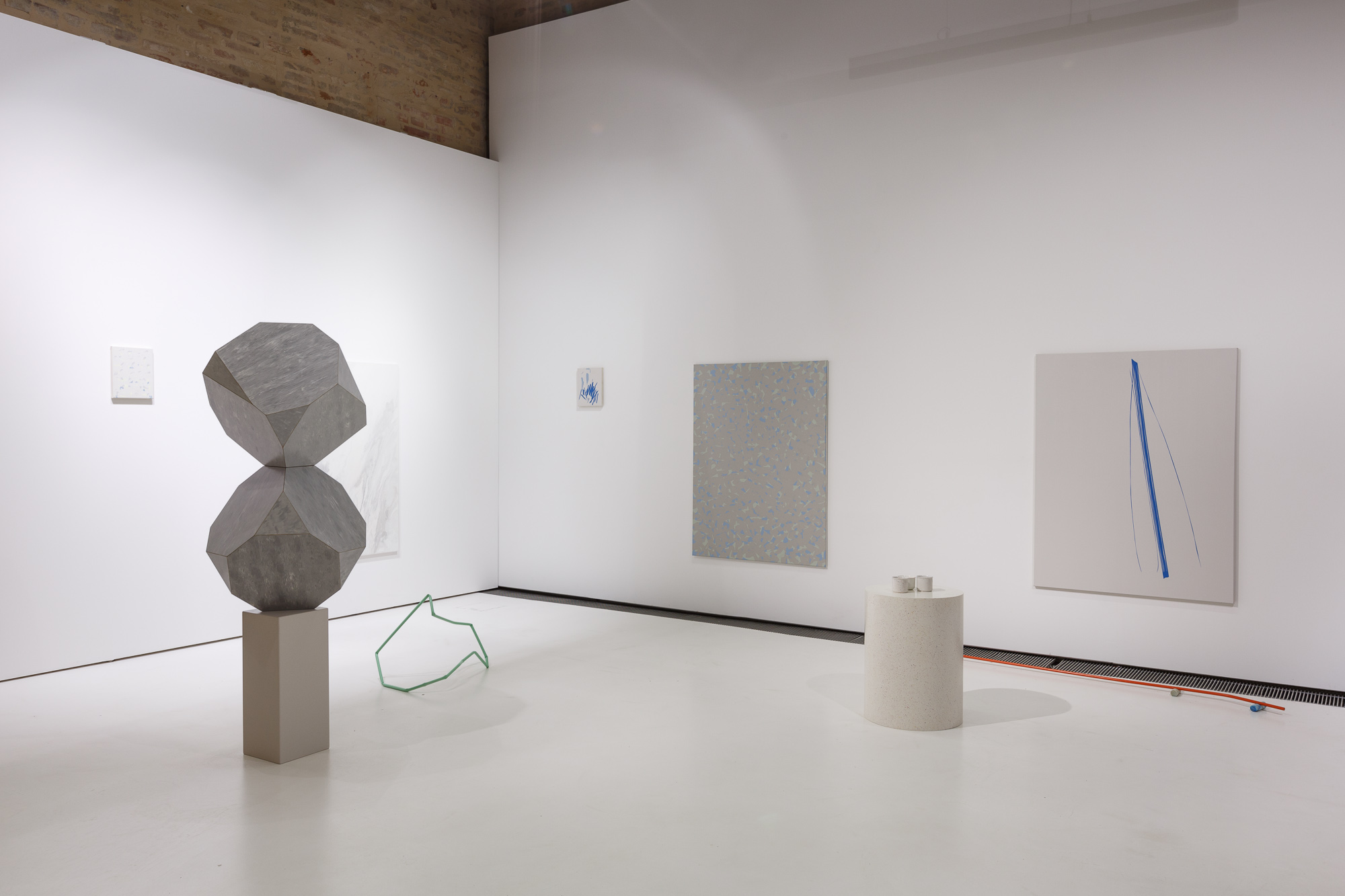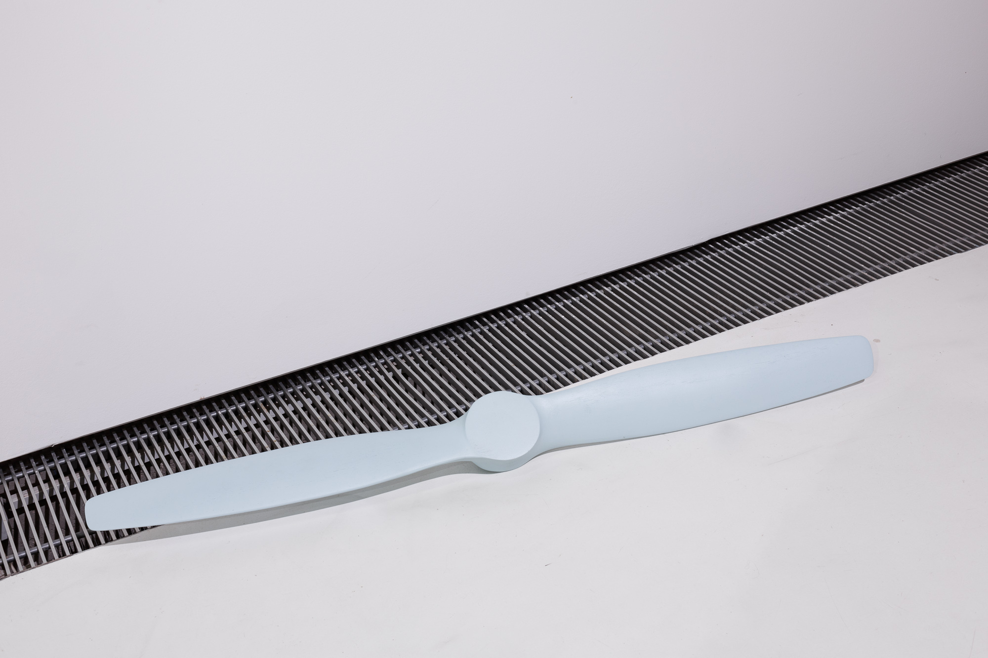 Lukas Thaler názvem výstavy The Propeller / Vrtule cíleně odkazuje ke scéně z filmu Michelangela Antonioniho Zvětšenina, kde se subjektivní interpretací stává z letecké vrtule objekt docela odlišné funkce. Tato interpretace objekt nově definuje jako předmět estetické a rituální povahy. Autor si vypůjčil tuto situaci jako určité schéma k vysvětlení postupů své vlastní práce, pro kterou je signifikantní, vedle již zmíněného zájmu o předmět a jeho status, i konceptuální reflexe média obrazu a malby a minimalisticky úsporná forma, která cíleně přejímá a následuje charakteristickou vizualitu prefabrikovaných materiálů vytvářející spíše zdání sofistikovaného uměleckého předmětu.